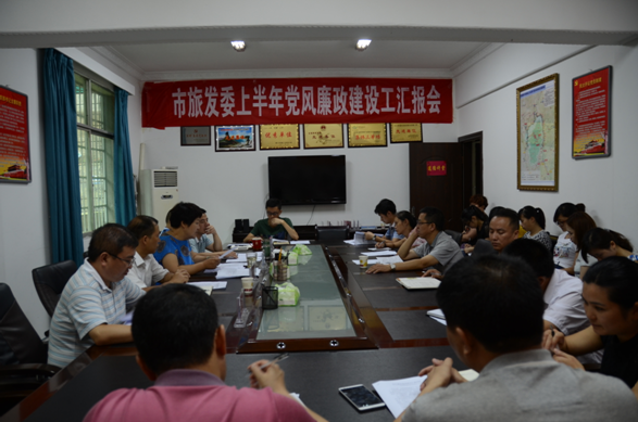 7月22日,市旅发委党组召开履行党风廉政建设责任制半年工作汇报会,党组成员及科室负责人向党组汇报了2015年上半年履行党风廉政建设责任制执行情况,市纪委监察分局第六纪工委到会指导。