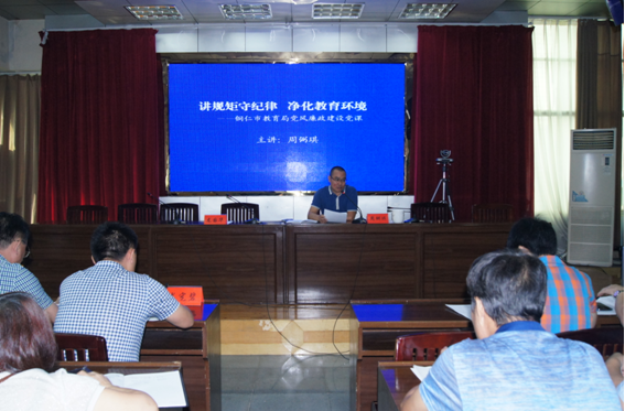 2015年8月25日,市纪委派出第六纪工委副书记、市教育局党组成员、纪检组长周弼琪以《守纪律讲规矩,净化教育环境》为题,为局机关干部职工上党风廉政建设专题党课。