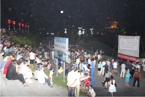 为隆重纪念中国人民抗日战争暨世界反法西斯战争胜利70周年,铜仁市文体广电新闻出版局党组和纪检组精心组织铜仁新锦江院线公司在碧江区锦江广场、三江公园、火车站广场、金滩广场开展“爱国主义•廉政影片进广场”宣传月活动。为群众放映《百团大战》、《贪食“群蝇”终自毁》等爱国主义及廉政影片。