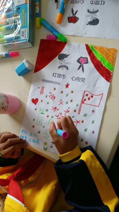 德江县枫香溪镇八一爱民学校少先队员用绘画的方式表达对祖国的祝福