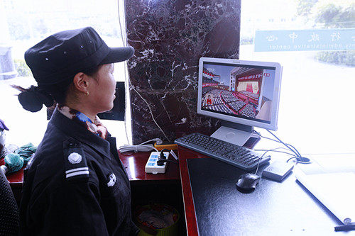 石阡县政府大楼物业管理公司门卫员心系十九大