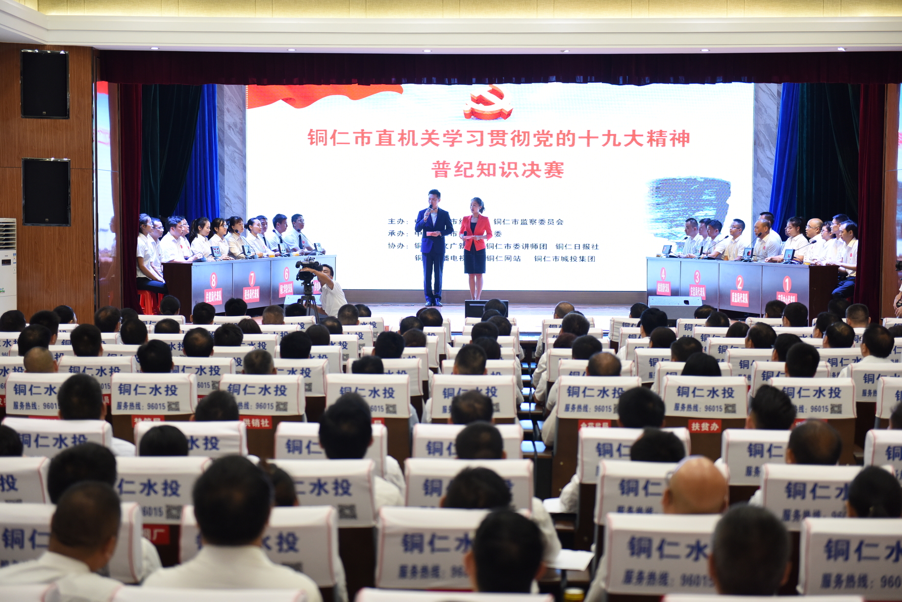 8月29日,铜仁市直机关“学习贯彻党的十九大精神·普纪知识”竞赛决赛在市水投公司一楼会议室举行。来自市直机关的8支队伍参加决赛。市委常委、市纪委书记、市监委主任蒋兴勇出席竞赛活动并颁奖。市直107家参赛单位负责人等230余人参加决赛活动。