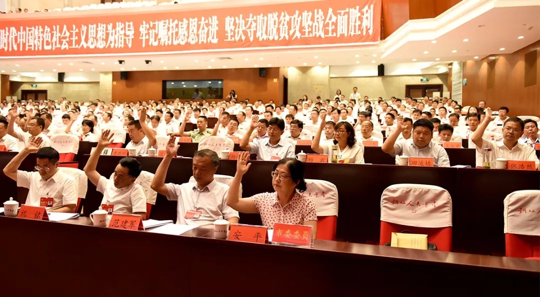 全会号召,全市各级党组织和广大党员干部群众要紧密团结在以习近平同志为核心的党中央周围,在省委、市委的坚强领导下,以习近平新时代中国特色社会主义思想为指导,深入贯彻落实习近平总书记关于扶贫开发的系列重要论述,大力培育和弘扬新时代贵州精神,牢记嘱托、感恩奋进,顽强拼搏、苦干实干,举全市之力尽锐出战、发起总攻,坚决夺取脱贫攻坚战全面胜利,加快实现“一区五地”奋斗目标!