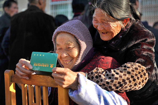 全国城乡居民基本养老保险基础养老金最低标准的提高,进一步提升了老年人的生活水平。图为江西省莲花县一位奶奶看着存折里不断累积的养老保险金,露出幸福的笑容。