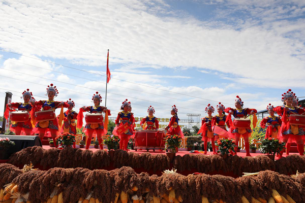 为庆祝丰收,近日遵义市播州区三岔镇举办第三届“中国农民丰收节”。图为当地群众载歌载舞庆祝丰收的场景。(遵义市播州区纪委监委供 曾慎明 摄)