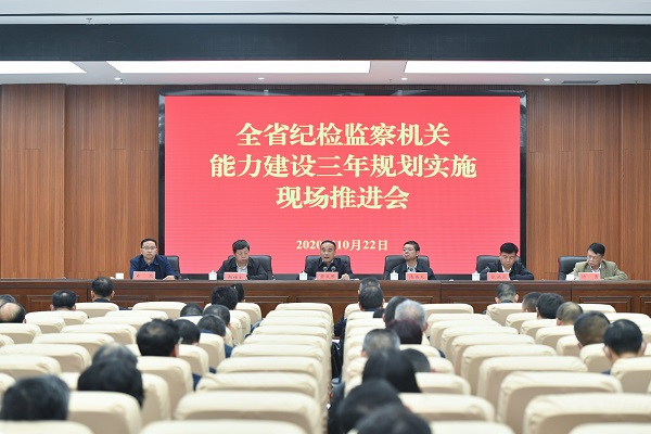10月22日,全省纪检监察机关能力建设三年规划实施现场推进会在贵阳召开。会议深入学习贯彻习近平总书记关于纪检监察机关和纪检监察干部队伍建设系列重要指示精神以及赵乐际同志在贵州调研考察时所作讲话要求,通报《贵州省纪检监察机关能力建设三年规划(2019-2021)》部署的政治业务能力提升、人才“双千工程”、大数据信息化工程、监督执纪执法保障强化工程推进情况,宣读2020年度规划实施情况综合检查评估方案,安排部署下步工作。