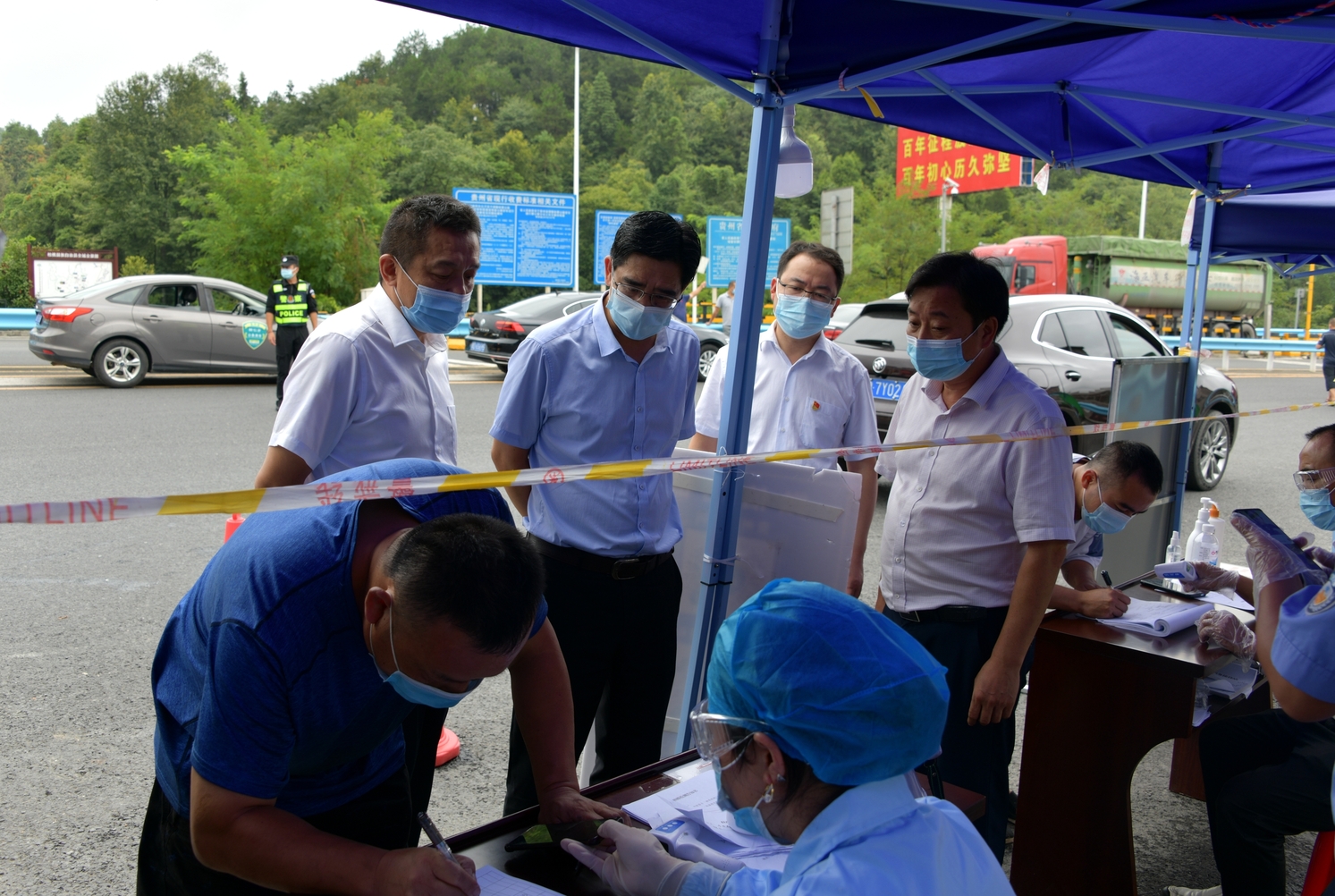 罗雁冰在松桃苗王城高速匝道口督导疫情防控情况
