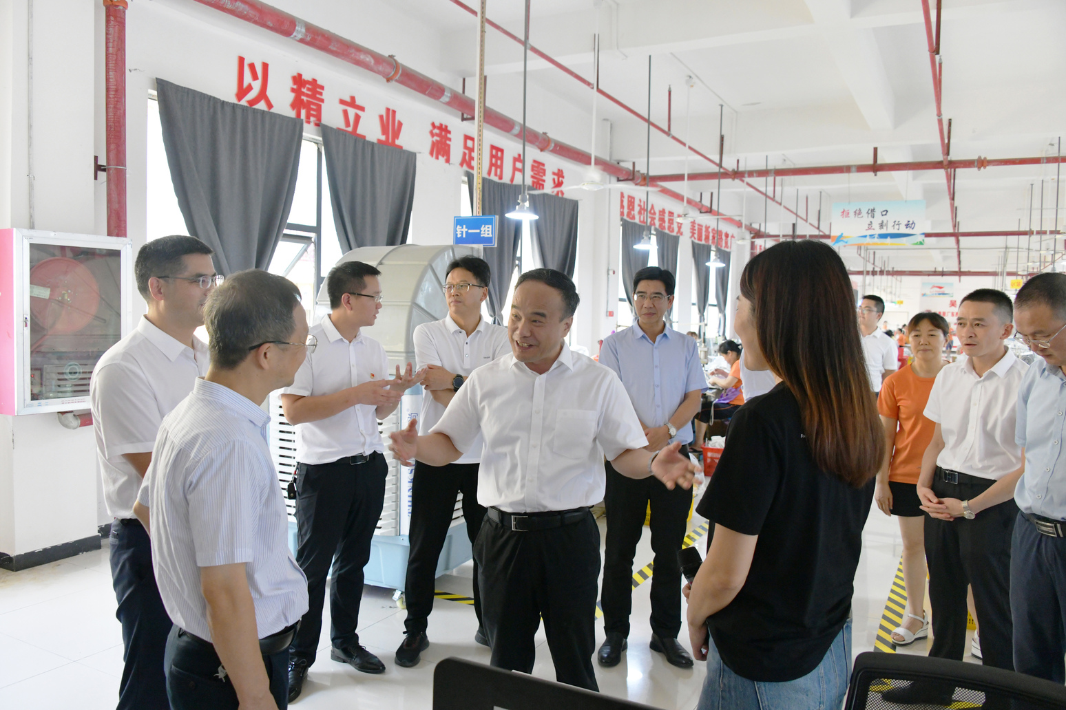 图为黄文胜(右二)在印江巨泰鞋业调研