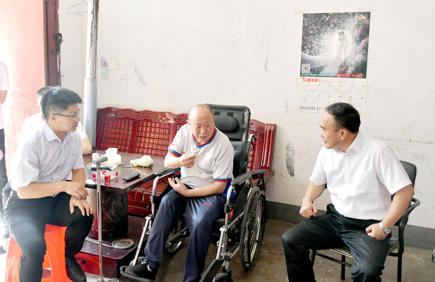 图为黄文胜(右一)在印江县朗溪镇群众家中走访