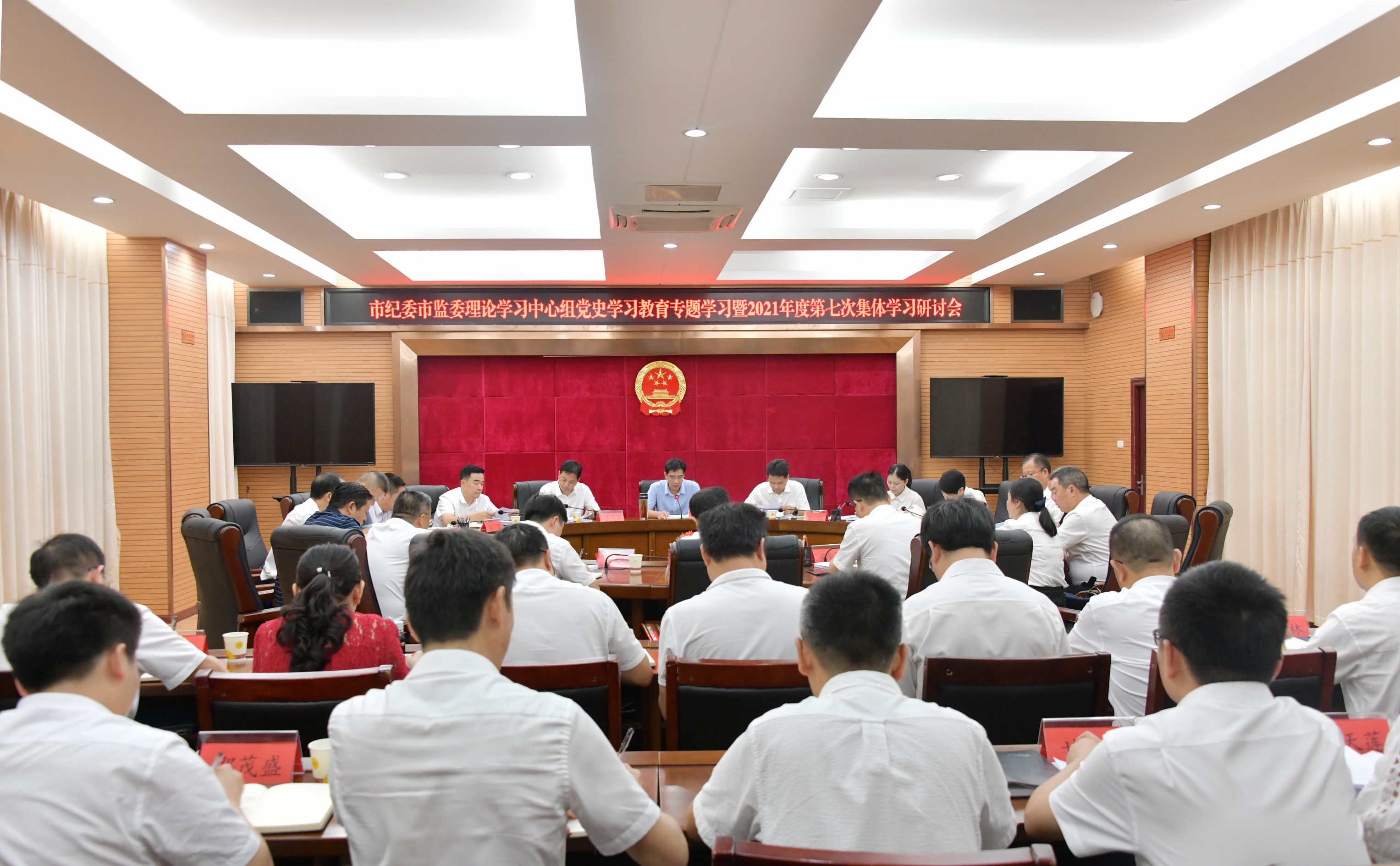 9月17日,铜仁市委常委、市纪委书记、市监委代理主任罗雁冰主持召开市纪委市监委理论学习中心组党史学习教育专题学习暨2021年度第七次集体学习研讨会,深入学习领会习近平总书记“七一”重要讲话精神、习近平总书记在中央党校(国家行政学院)中青年干部培训班开班式上的重要讲话精神等,围绕“五个庄严宣告”“伟大建党精神”主题开展学习研讨。
