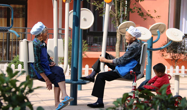 黔南州惠水县完善移民安置点配套设施,着力打造服务型社区,让老年人老有所养、老有所乐。图为该县明田街道移民安置点的两位老人正在沐浴阳光,有说有笑。(黔南州惠水县纪委监委供 胡本贵 摄)
