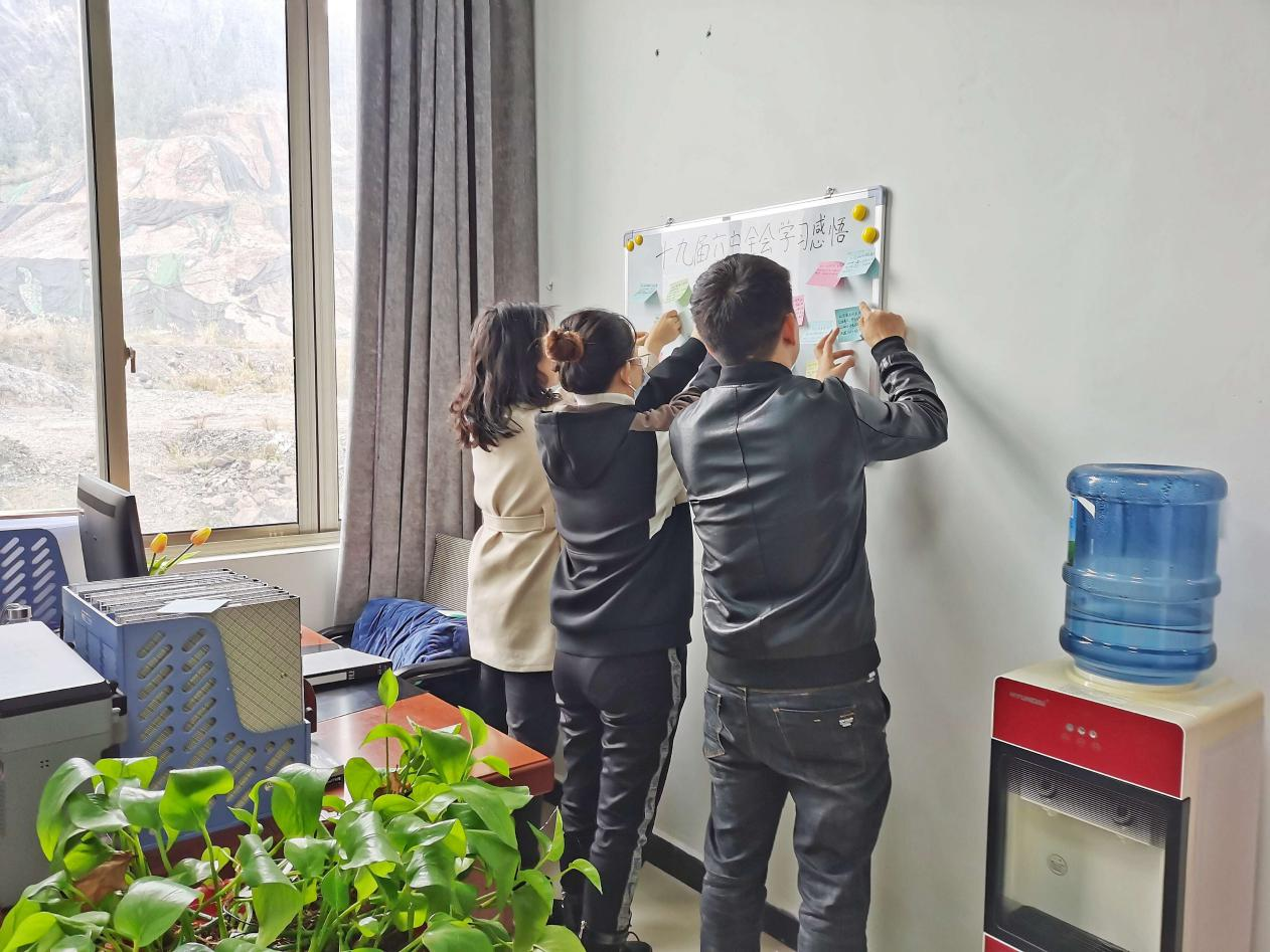 十九届六中全会召开后,铜仁市万山区纪委监委在及时组织集体学习的基础上,开展全会学习心得分享活动,通过写字板等“晒”出感悟,推动学习走深走实。图为该区纪检监察干部正在墙上的写字板上张贴自己最新的学习心得。(铜仁市万山区纪委监委供 杨幸子 摄)