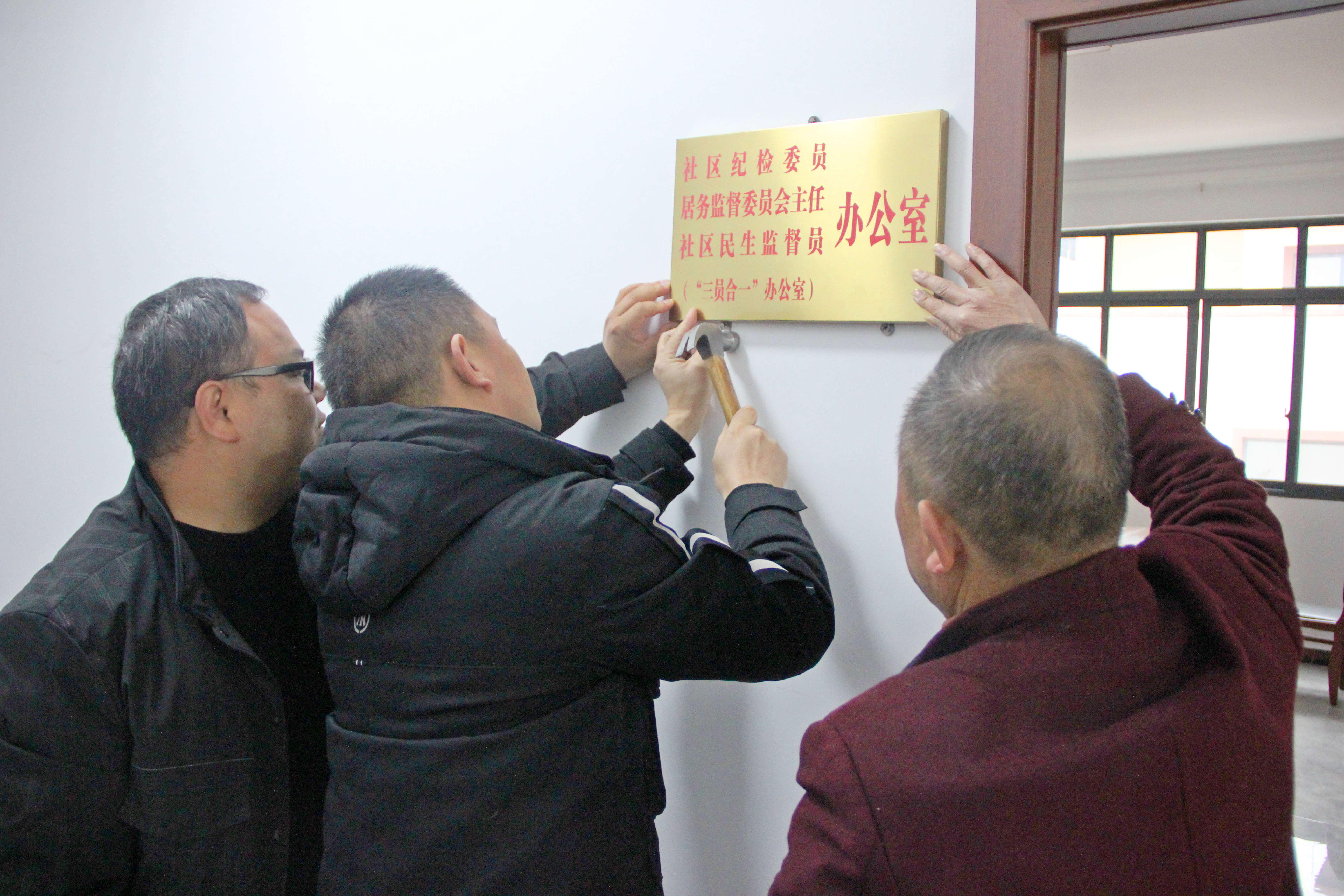 图为碧江区川硐街道坞坭社区“三员合一”人员办公室的挂牌现场