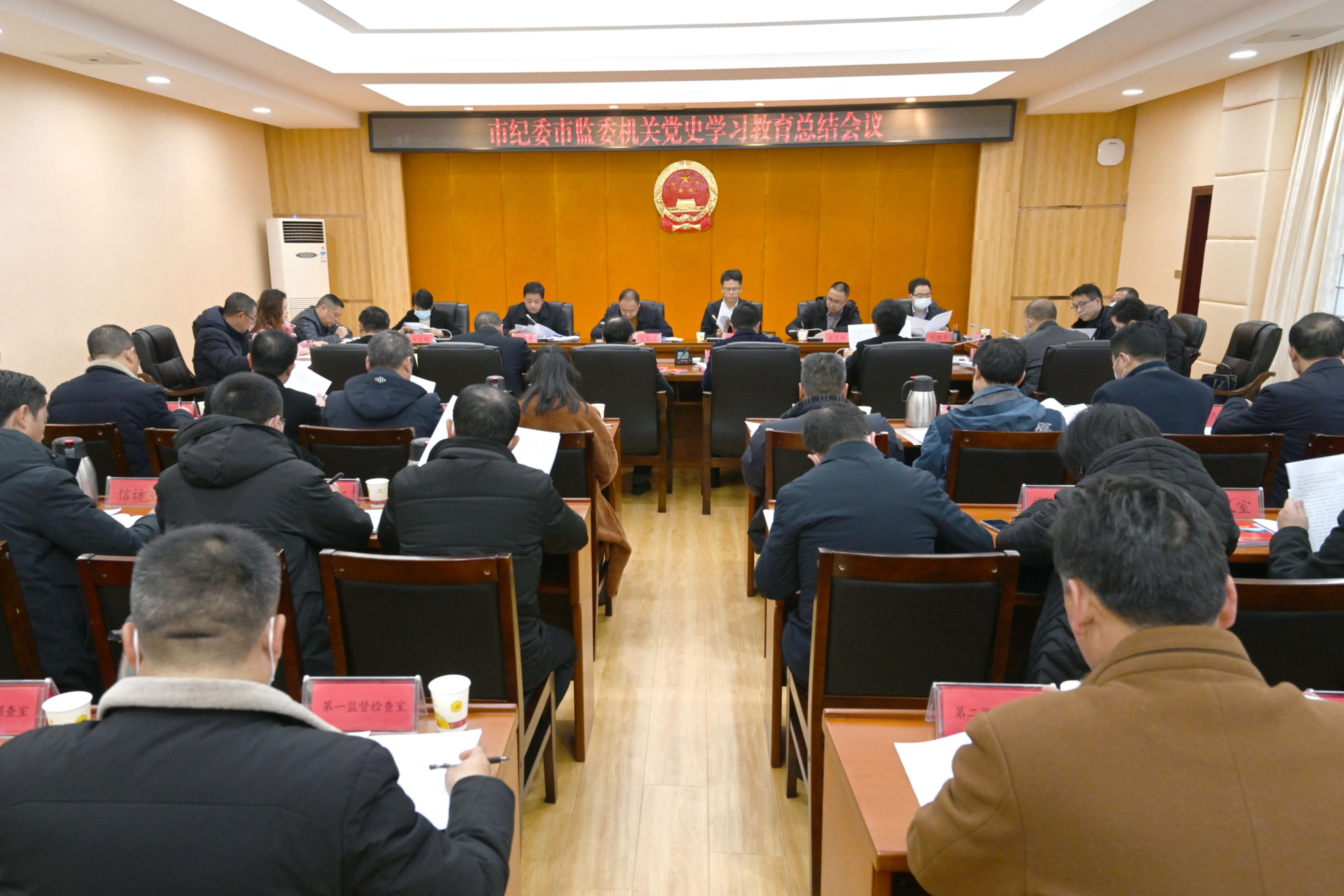 1月19日,铜仁市纪委市监委机关党史学习教育总结会议召开,传达学习习近平总书记关于党史学习教育的重要指示和中央、省委、市委党史学习教育总结会议精神,通报机关党史学习教育工作情况,研究部署巩固深化党史学习教育成果。市委党史学习教育第十巡回指导组组长任廷跃到会指导并讲话,受市委常委、市纪委书记、市监委主任罗雁冰委托,市纪委常务副书记、市监委副主任龙之衡主持会议并讲话。