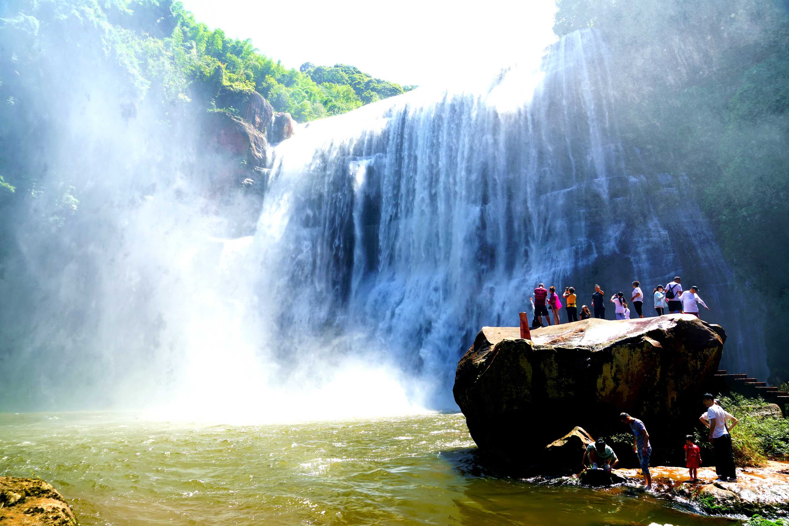 春雨过后的赤水大瀑,水流从悬崖绝壁上倾泻而下,似万马奔腾,气势磅礴,与美丽壮观的丹霞相互交织,几里之外声如雷鸣,数百米内水雾弥漫,阳光照射之下,呈现奇妙的“佛光环”,随游客移动,一人一环,美不胜收。(遵义市赤水市纪委监委供 刘继峰摄)