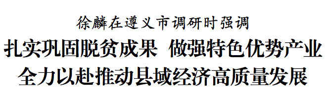 3月25日至27日,省委书记、省人大常委会主任徐麟深入遵义市务川自治县、道真自治县、正安县调研。他强调,要深入学习贯彻习近平总书记视察贵州重要讲话精神和全国两会精神,坚定不移围绕“四新”主攻“四化”,扎实巩固拓展脱贫攻坚成果、推进乡村全面振兴,做强特色优势产业,全力以赴推动县域经济高质量发展。省委常委、省委统战部部长郭强,省委常委、遵义市委书记李睿,省委常委、省委组织部部长时玉宝参加。
