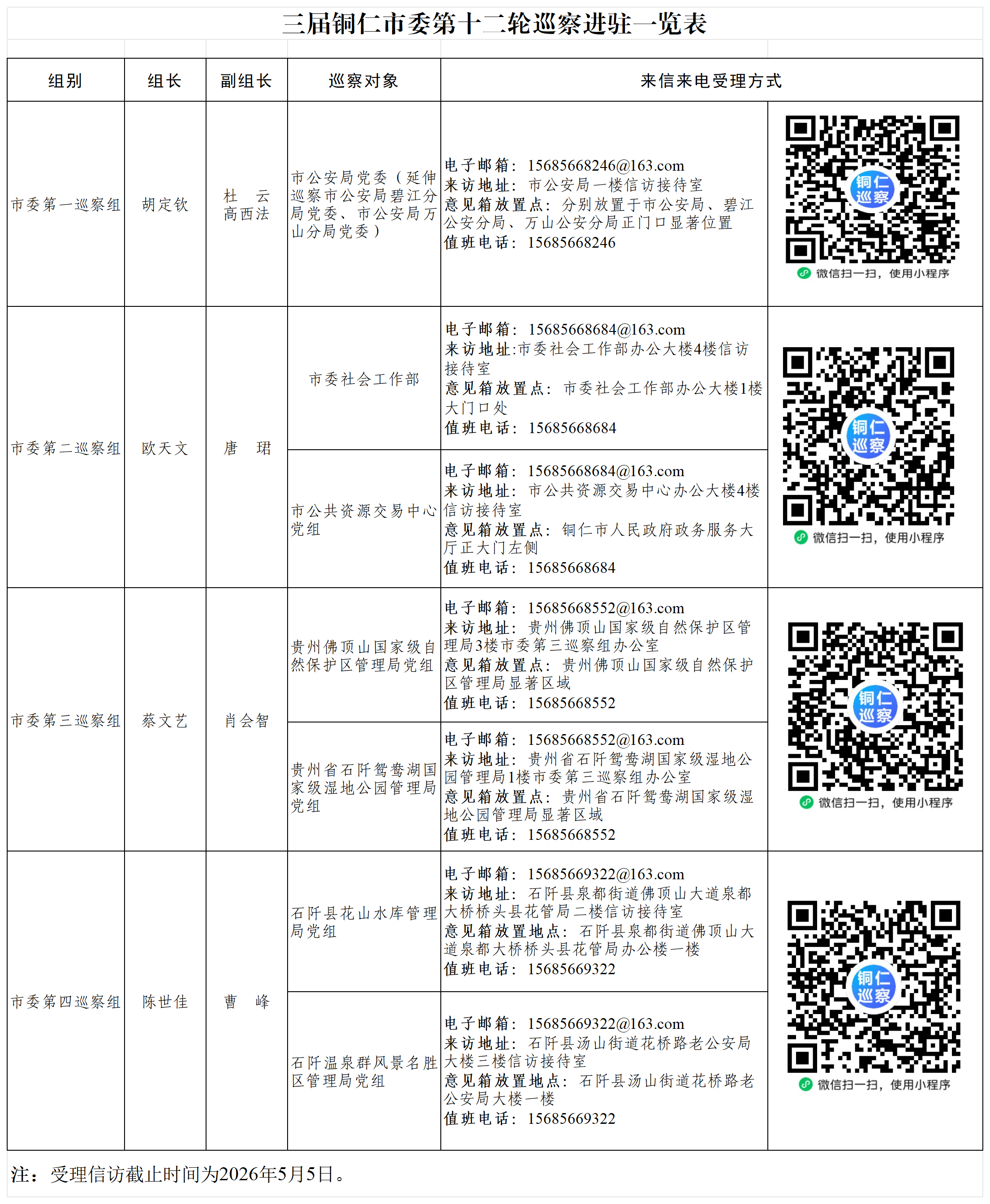 据悉,市委各巡察组将在被巡察党组织工作2个月左右,期间设立专门值班电话和邮箱,主要受理反映被巡察党组织领导班子及其成员、下一级党组织领导班子主要负责人和重要岗位领导干部问题的来信来电来访,重点是关于违反政治纪律、组织纪律、廉洁纪律、群众纪律、工作纪律和生活纪律等方面的举报和反映,其他不属于巡察受理范围的信访问题,将按规定移交有关部门处理。巡察组受理信访截止时间为2026年5月5日。