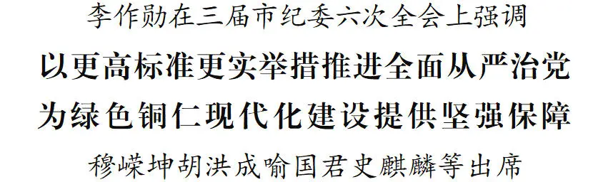 2月3日,三届市纪委六次全会在碧江召开。市委书记李作勋出席会议并讲话。他强调,要深入贯彻习近平总书记在二十届中央纪委五次全会上的重要讲话和在贵州考察时的重要讲话精神,严格落实十三届省纪委五次全会要求,以更高标准、更实举措推进全面从严治党,为绿色铜仁现代化建设提供坚强保障。